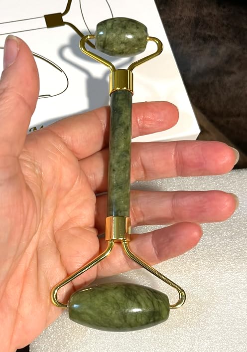 I've seen products like this before but hadn't tried one for myself until recently. I love the appearance of this set, and while I had planned to do some testing to confirm that it's authentic jade I haven't been able to do so yet. On the surface it is consistent with green jade, but I'll update this review once I've done a hardness test and checked it with a loupe.I like the feel of the roller, and while I haven't been checking carefully to see if I notice any positive change in the appearance of my face I also haven't noticed any negative effects. I've started using the gua sha even more though, since seeing my physical therapist use a smooth metal tool for working on my injured hand. This is much easier for me to use because it's lighter, so I can keep my hand feeling better between visits.The presentation is good, with the tools in a gift box that has some information on how to use the set. I'm glad to have this and I recommend it for personal use or as a gift.